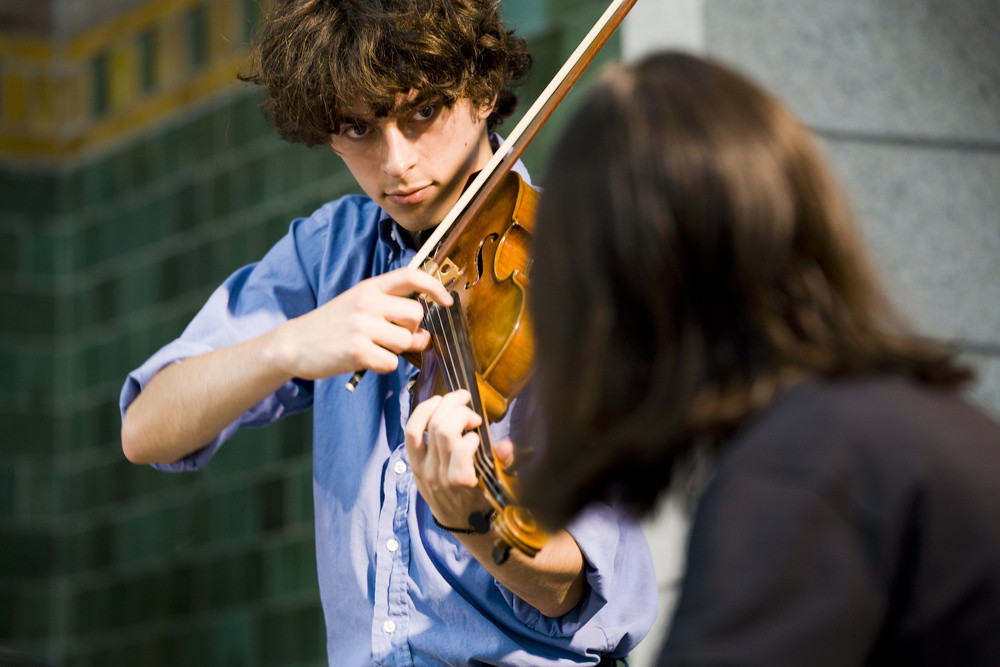 De stationshal vormt het perfecte decor voor de 'Scènes voor trombones' van componist Martijn Padding, een reeks korte aansprekende composities. Zijn student, de jonge componist …